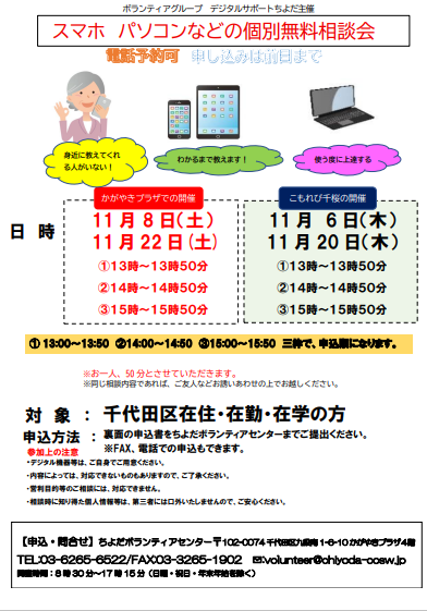 デジタルサポートちよだ デジタル機器の個別無料相談会