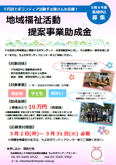 千代田区の地域福祉に貢献するボランティア・市民活動団体に対し、その経費の一部を助成します!